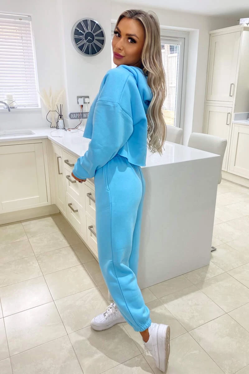Shop the ultimate Baby Blue Cropped Hoodie Lounge Set! Featuring a