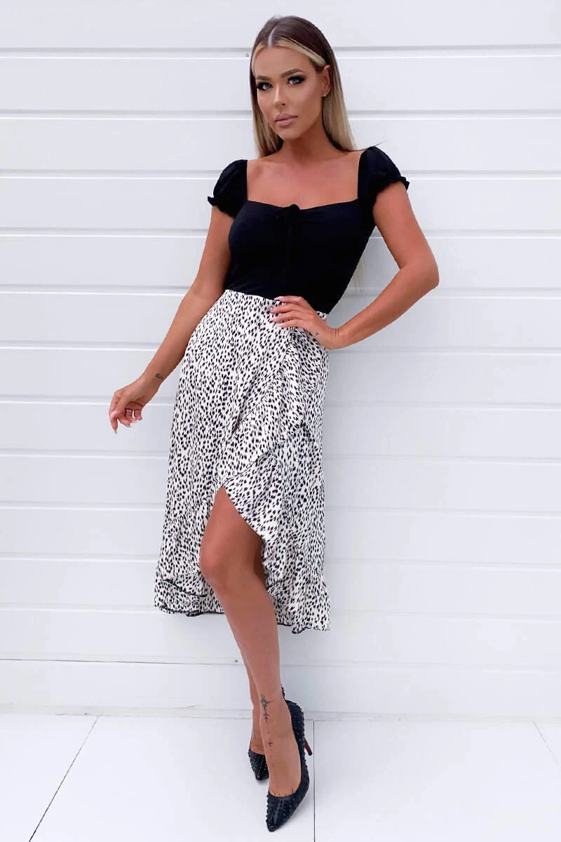 Our Black 2 in 1 Milk Maid Wrap Over Midi Dress is right on trend