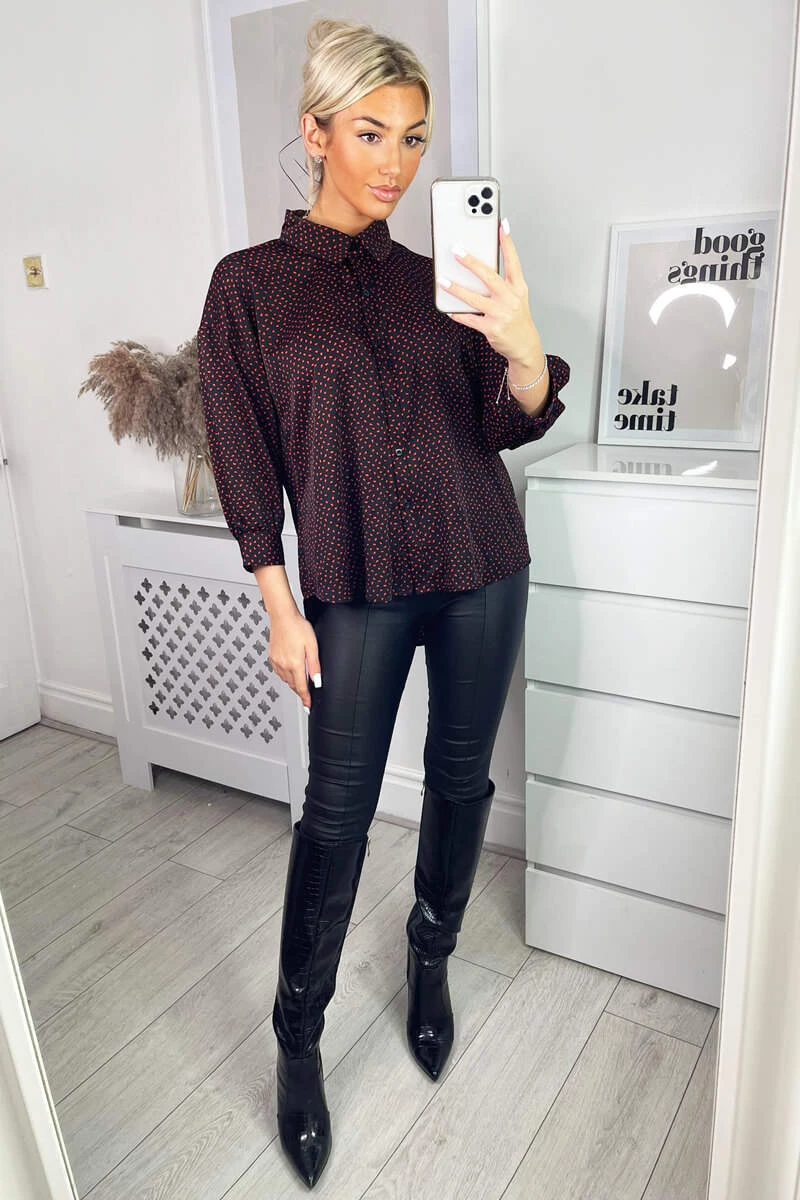 Our Black and Red Printed Button Up Shirt is so versatile! Featuring