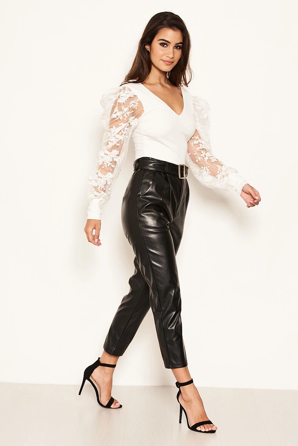 These Black Faux Leather Belted Trousers are an essential wardrobe