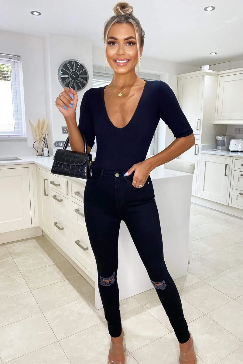 Our Black Ripped Knee Skinny Jeans are an essential this season. These