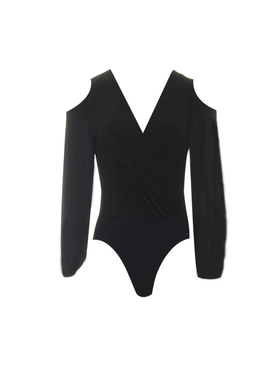 This is our black long sleeved bodysuit. Featuring a fitting shape and