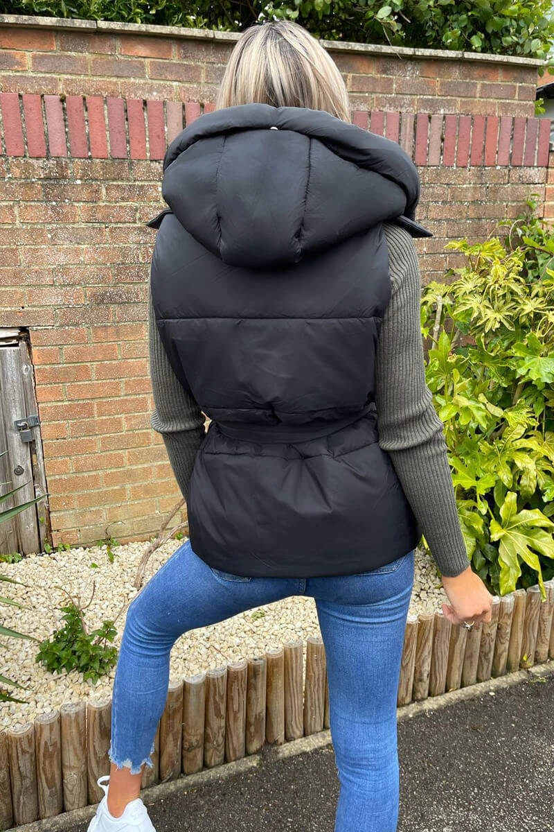 Our Black Tie Waist Hooded Gilet is a wardrobe staple! This design