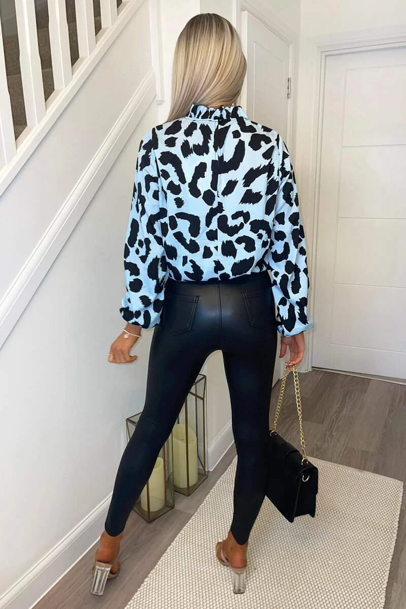 This is our Blue Animal Print High Neck Long Sleeve Top, with long