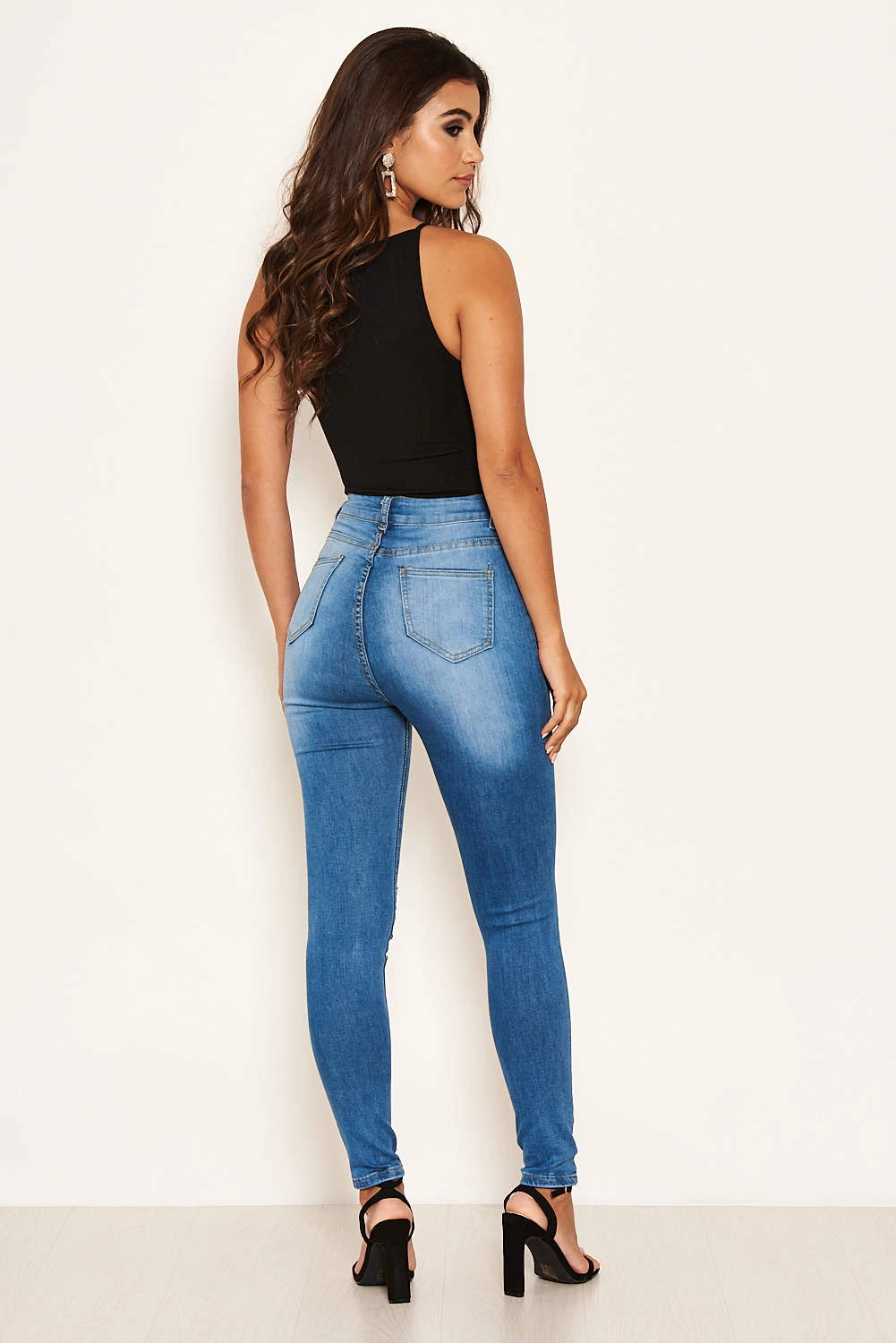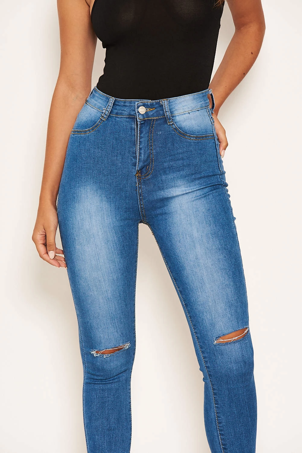 These Blue Ripped Knee High Waisted Jean are perfect from day to