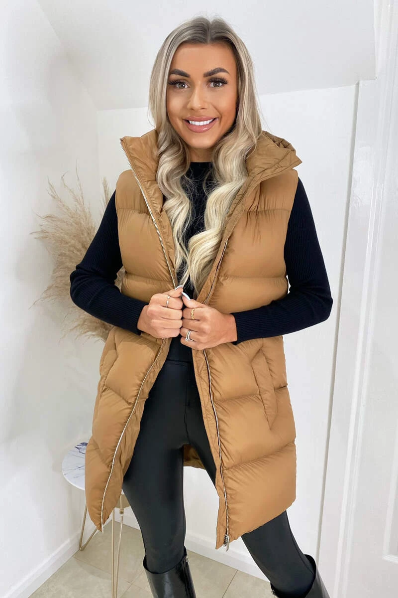 Our Camel Drawstring Hooded Gilet is a wardrobe staple! This design