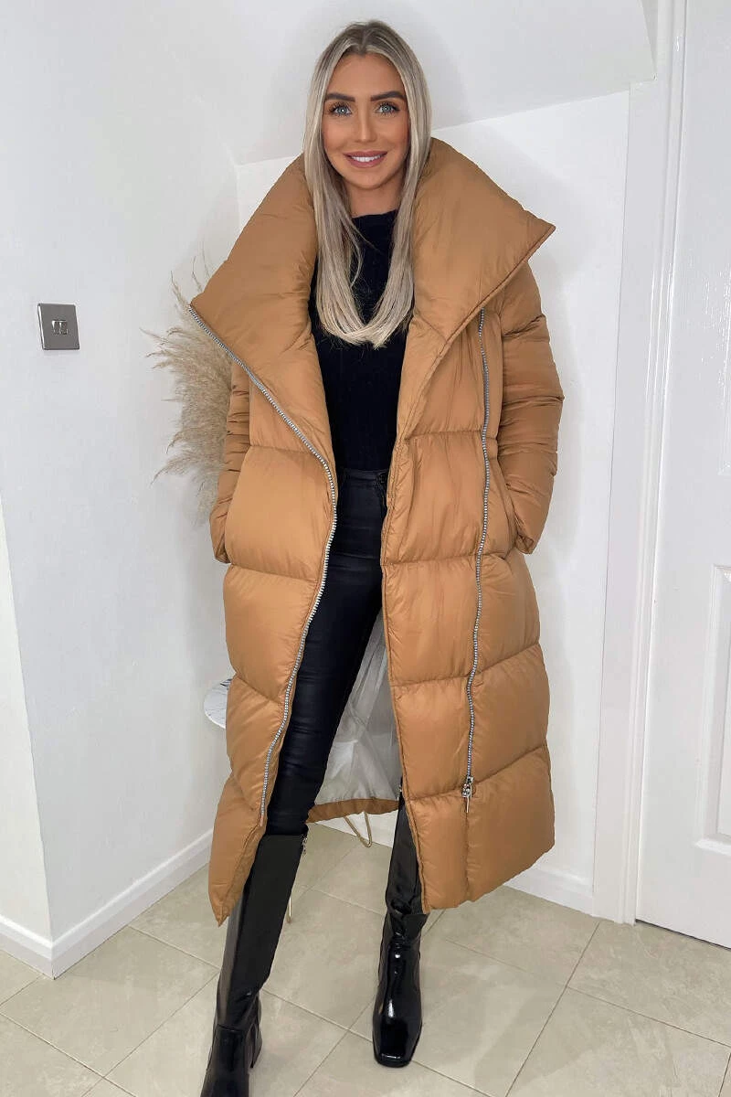 This Camel Wrap Puffer Coat is the essential coat for the colder