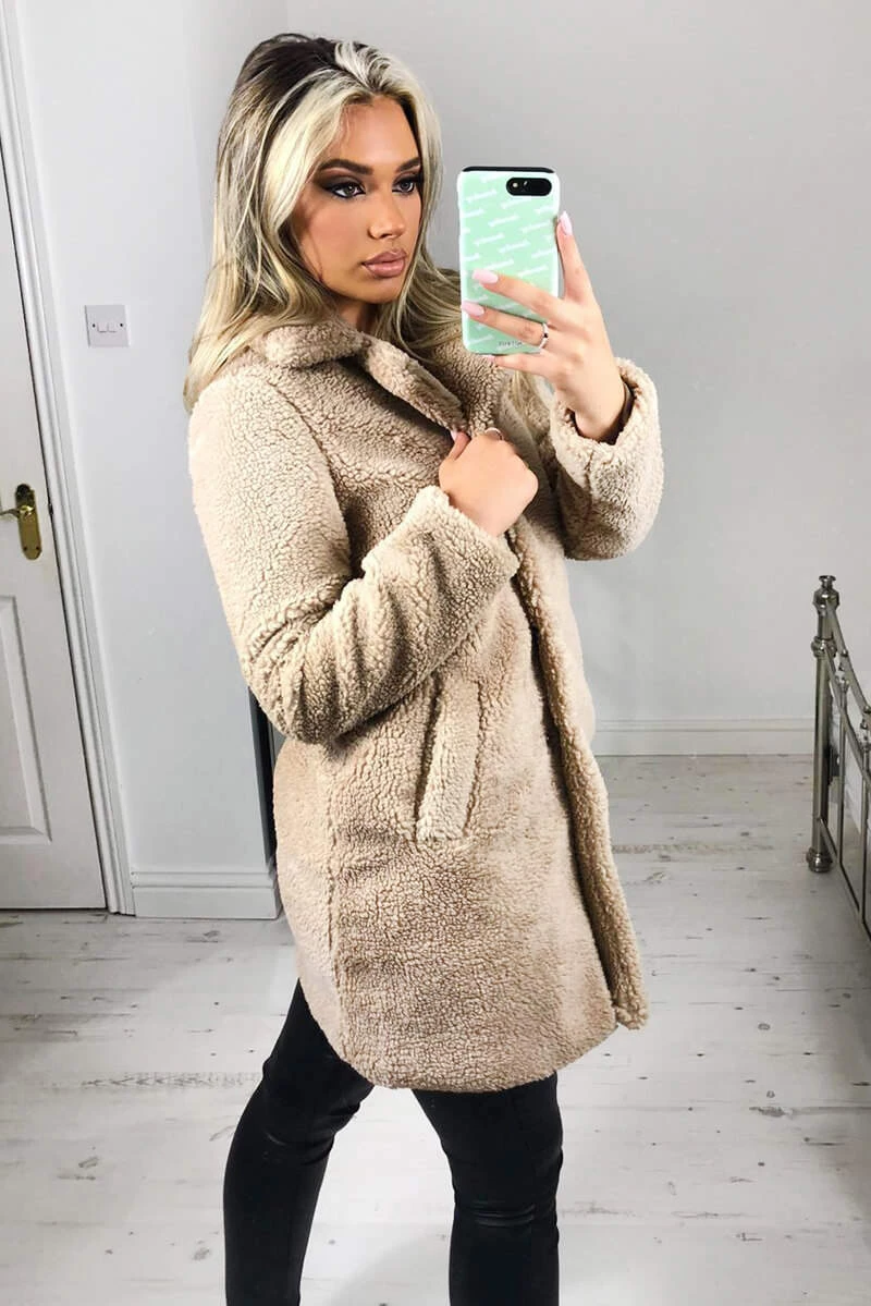 This Oatmeal Teddy Faux Fur Coat With Collar is perfect to add extra
