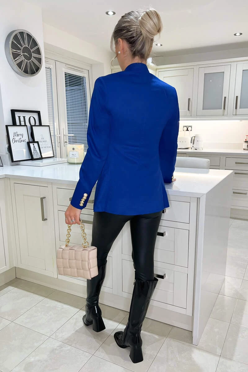 Complete your outfit with this Cobalt Blue Military Style Blazer !