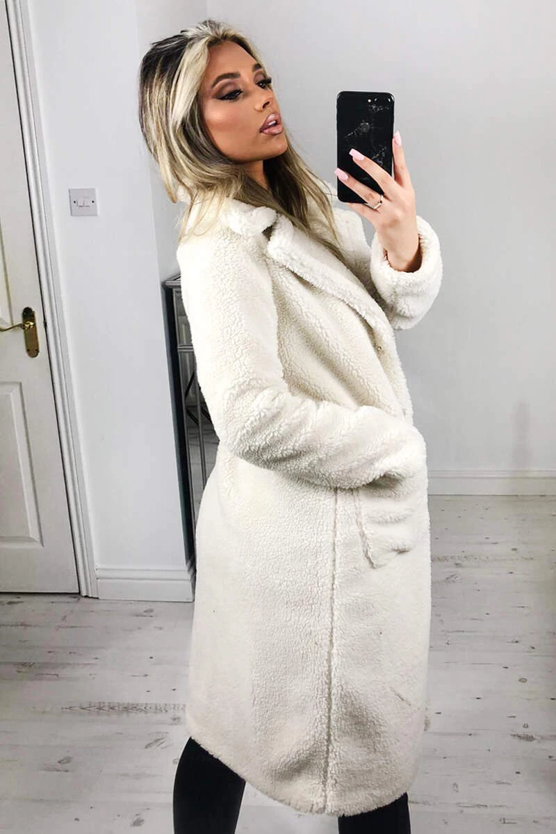 Our cream midi teddy coat is perfect to add extra style to this
