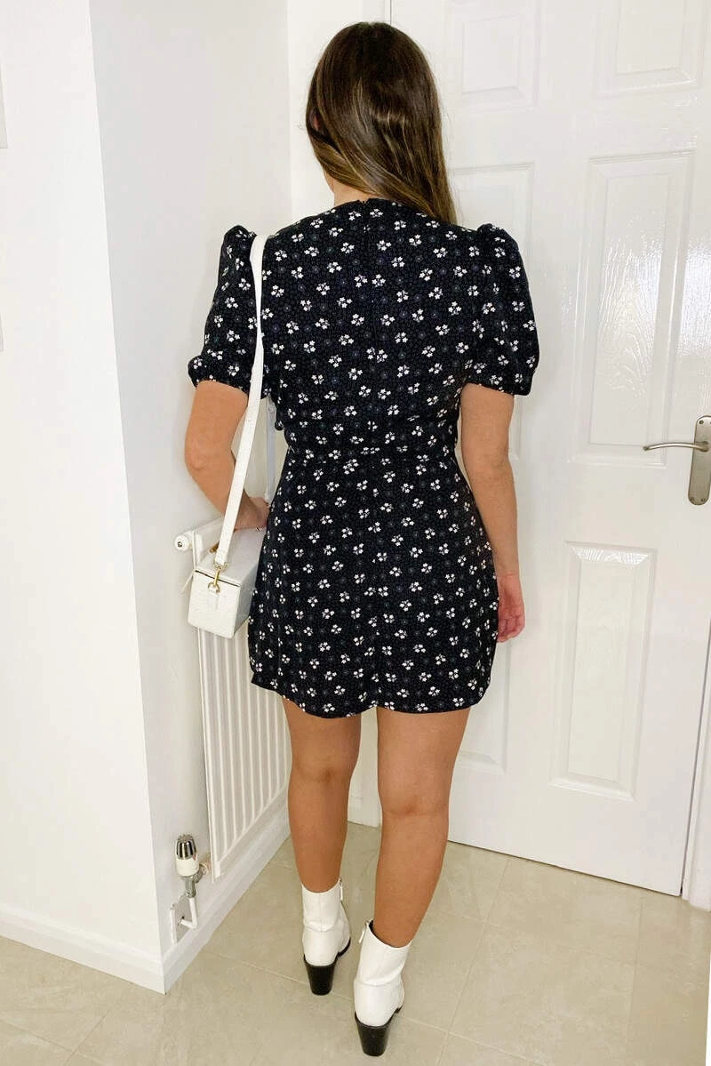 Stay cute this summer in our Black Ditsy Floral and Spot Pleat Wrap