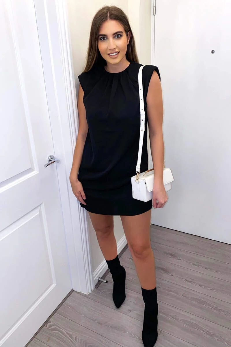Stay right on trend this season with our black padded shoulder shift dress! Featuring a padded shoulder and a key hole back fastening. Pair with strappy heels and simple clutch bag for a dressed up look.