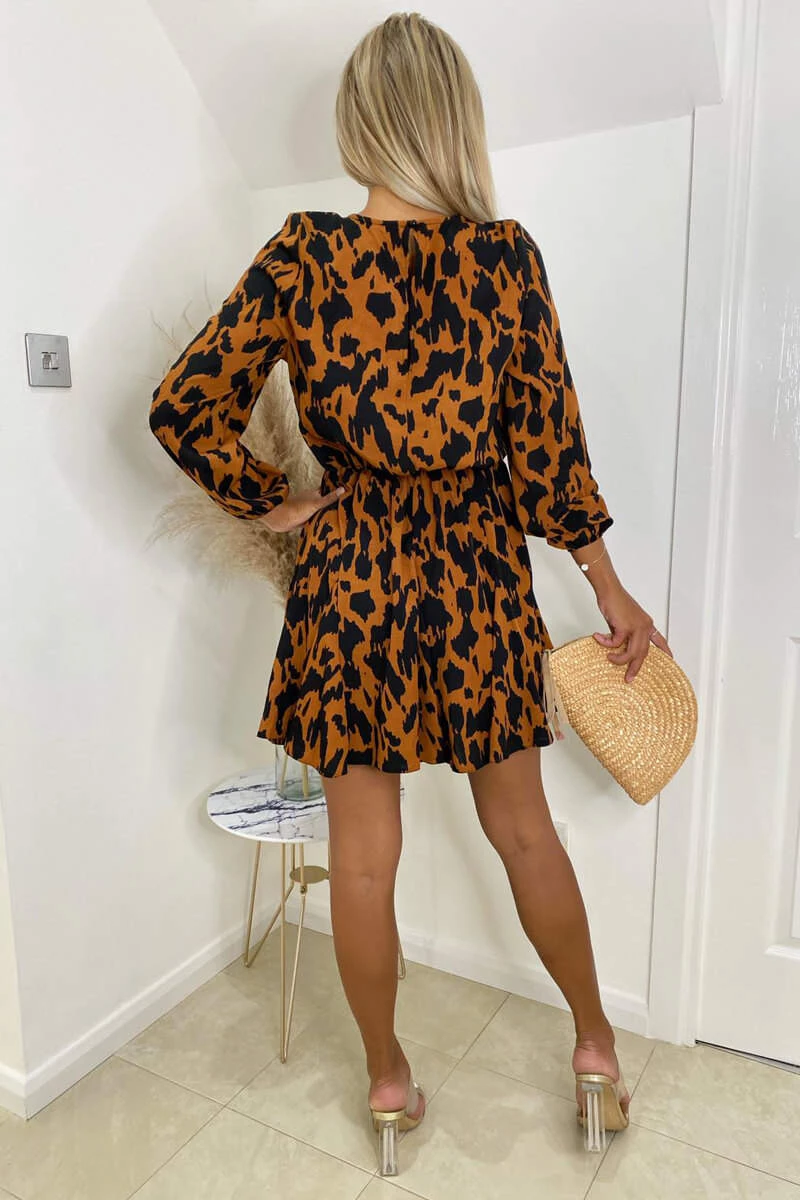This Camel Animal Print Pleated Skater Dress is the perfect day to