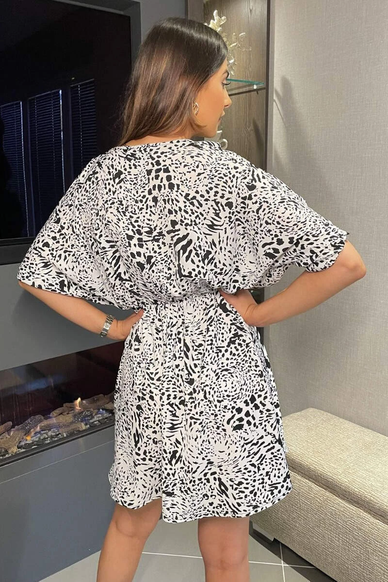 Dress. Features short batwing style sleeves with an elasticated cuff,