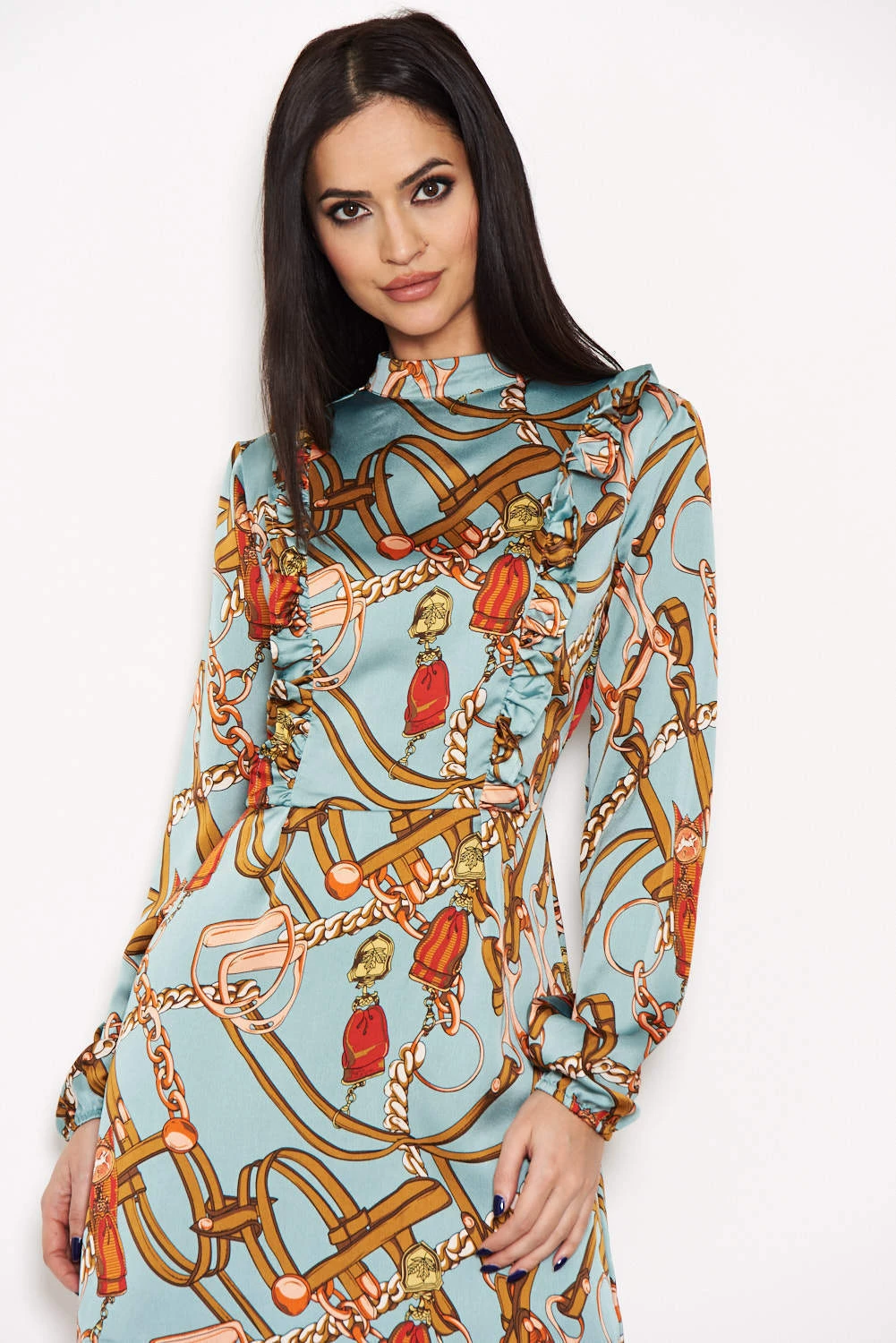Our Duck Egg Chain Print Dress is the perfect day to night dress!