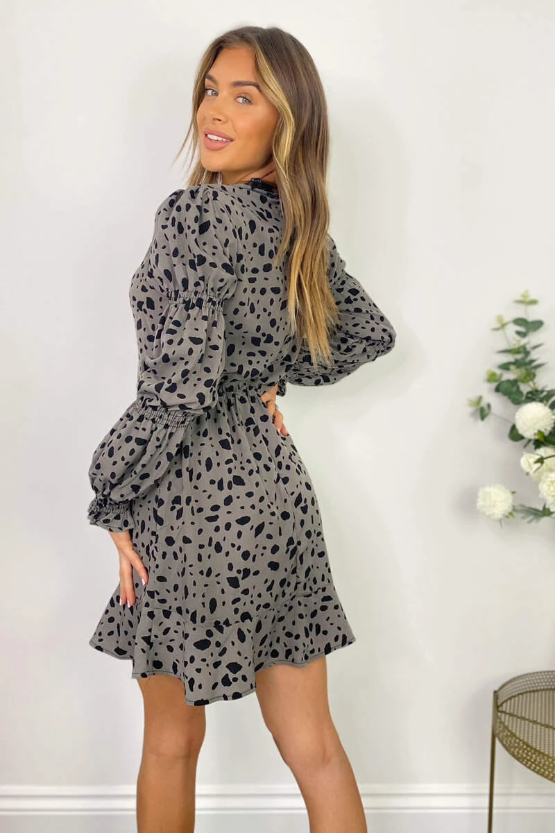 Feel super cute in this Grey Animal Print Elasticated Sleeve Skater