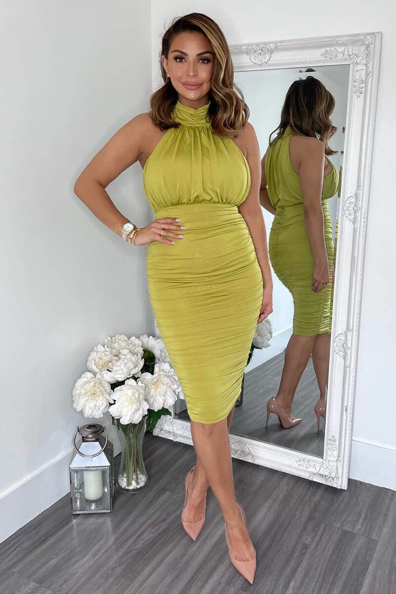 Our Lime Ruched High Neck Midi Dress is perfect for showing