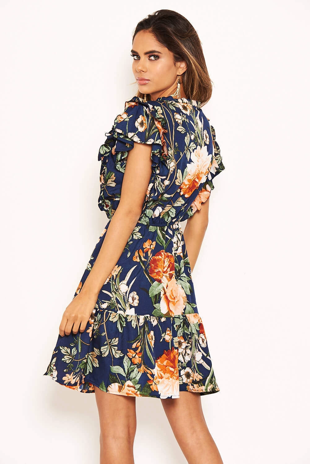 We’re loving this Navy Floral Frill Skater Dress. Featuring a double