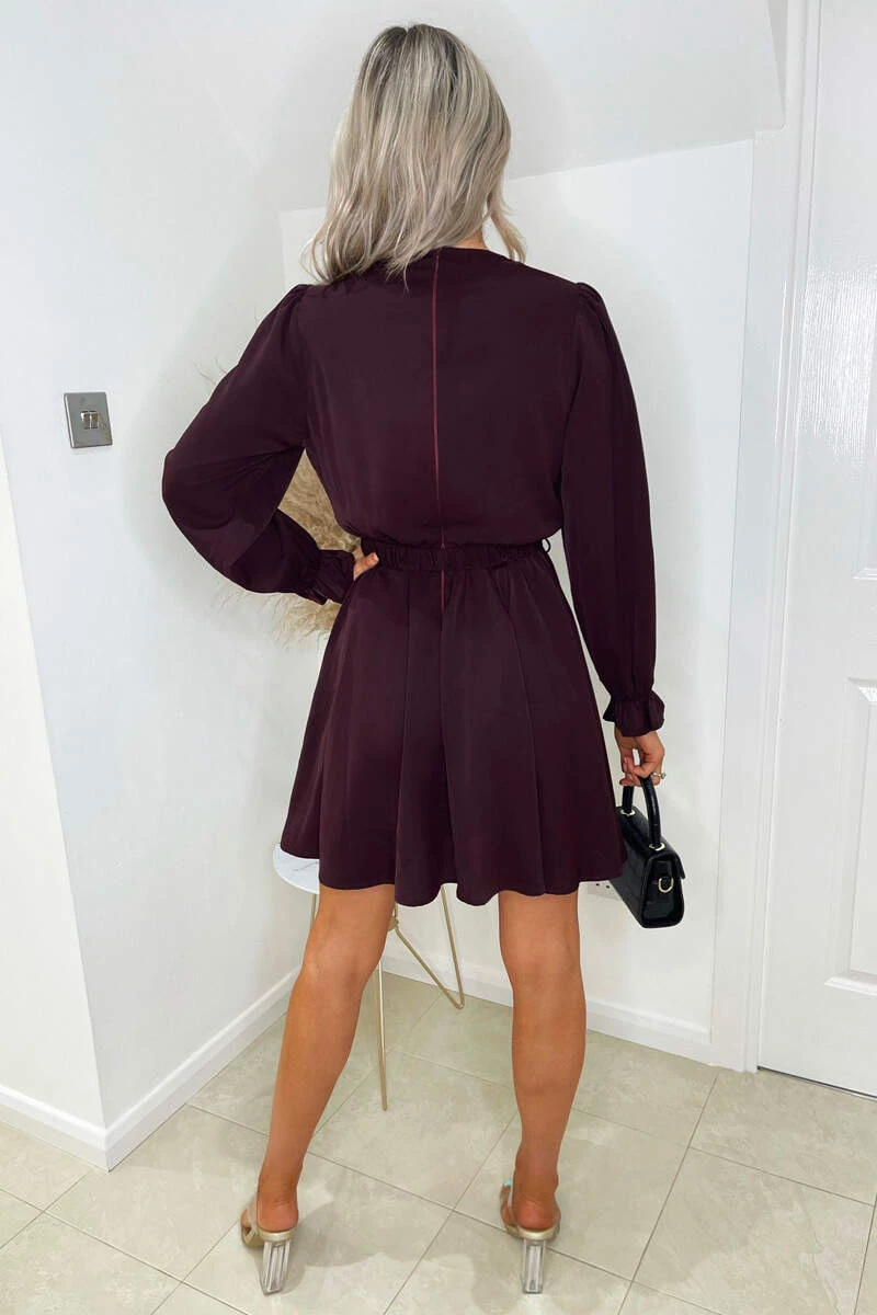Stay cute in our Plum Wrap Over Belted Skater Dress. Featuring a wrap