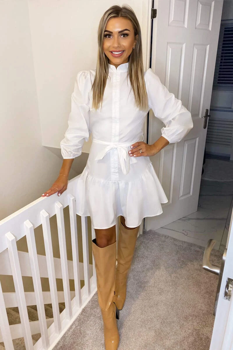 Our White Frill Skirt Button up shirt Dress is a must have this
