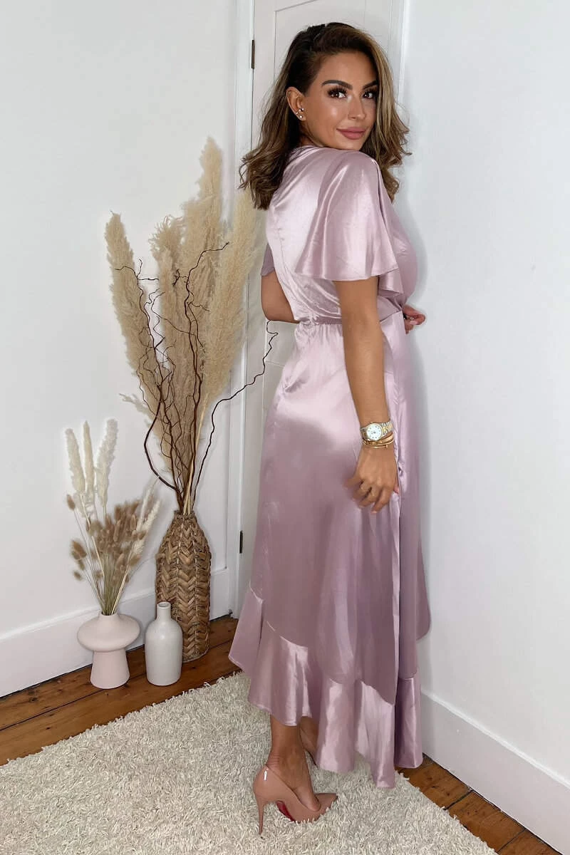 Our Dusty Pink Satin Frill Hem Short Sleeve Midi Dress is the perfect