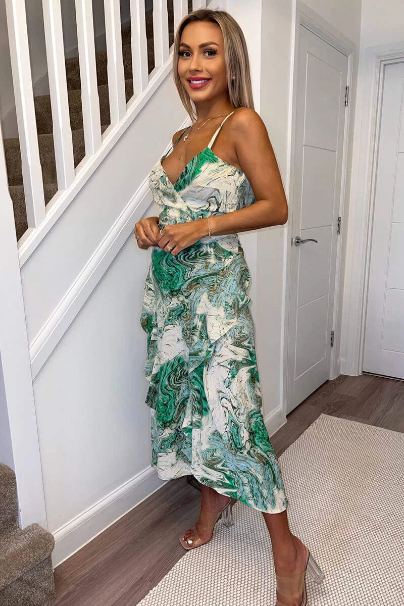 Our Green Marble Print Double Frill Strappy Midi Dress is right on