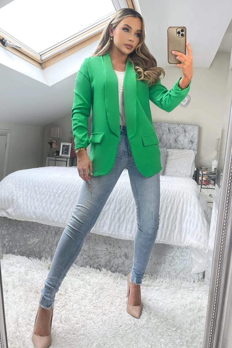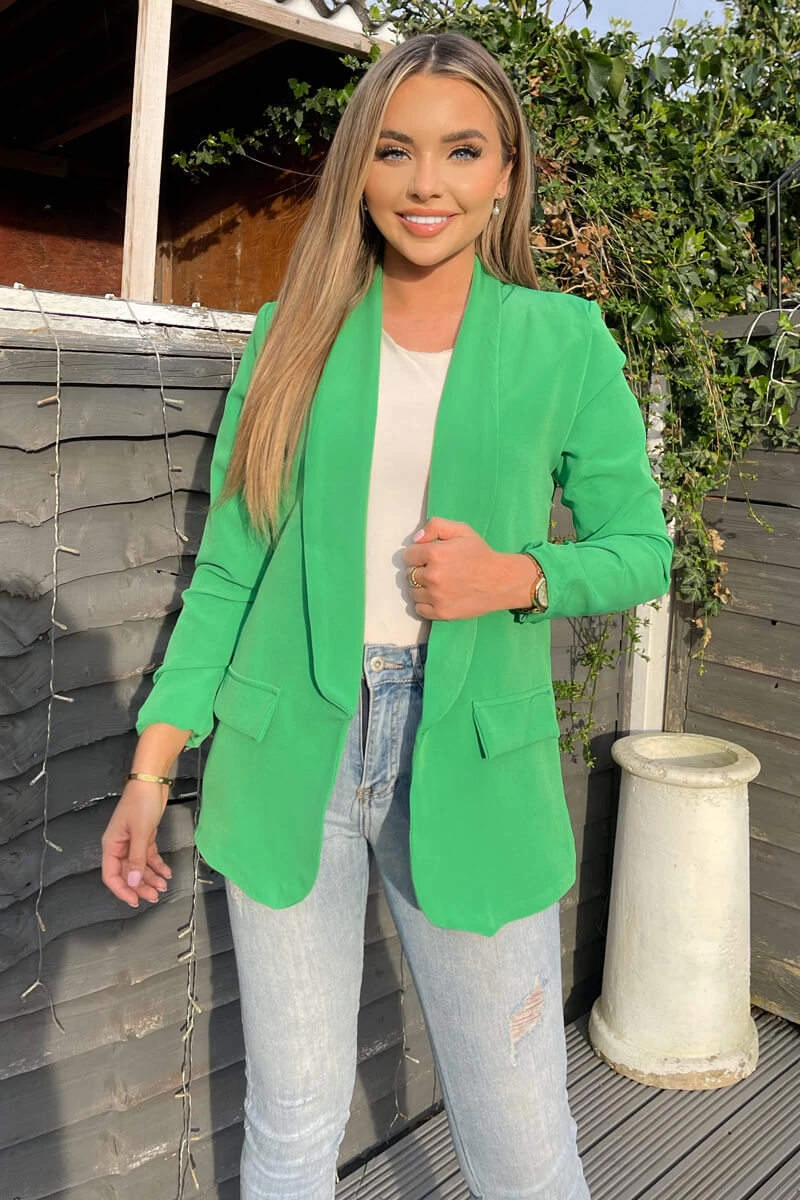 Complete your outfit with our Green Ruched Detail Sleeve Blazer!