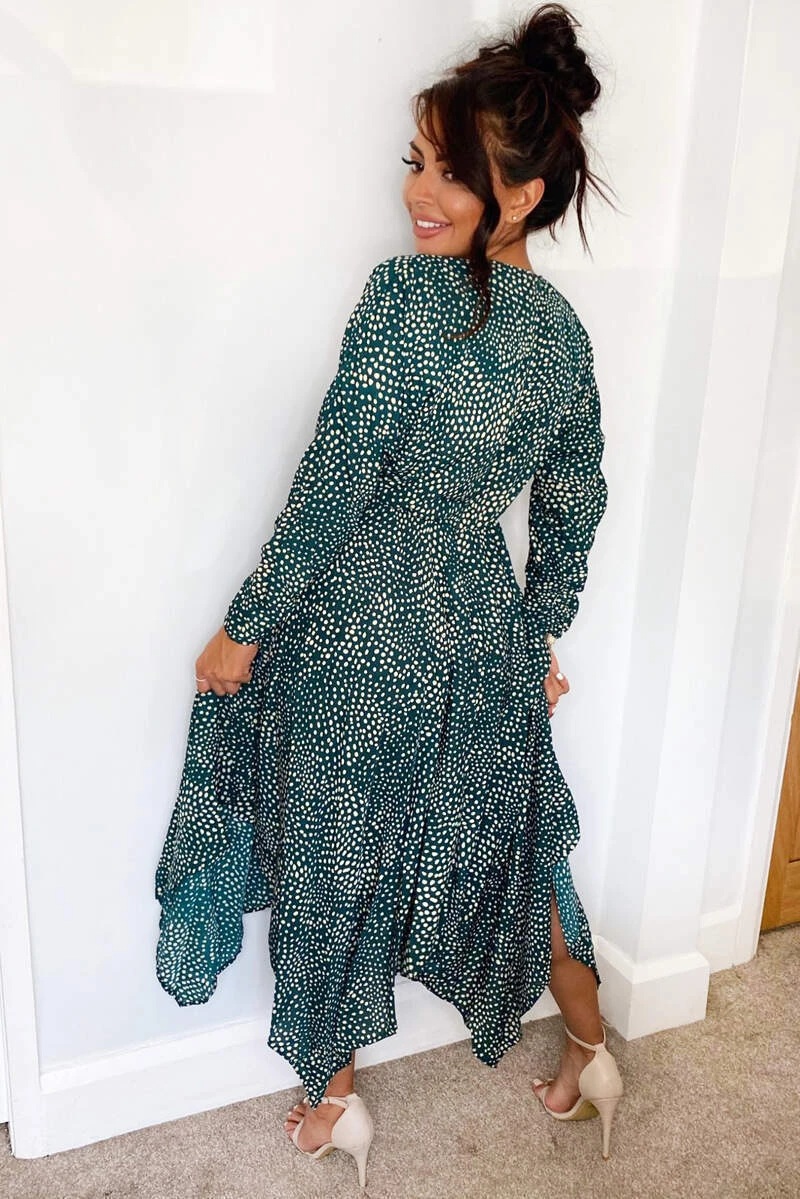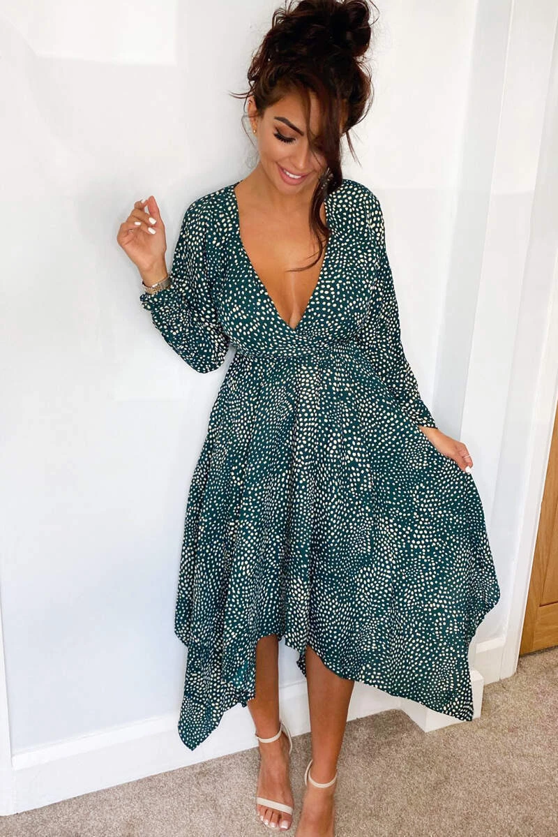 This Green Spotty Handkerchief Midi Dress is the perfect dress for any