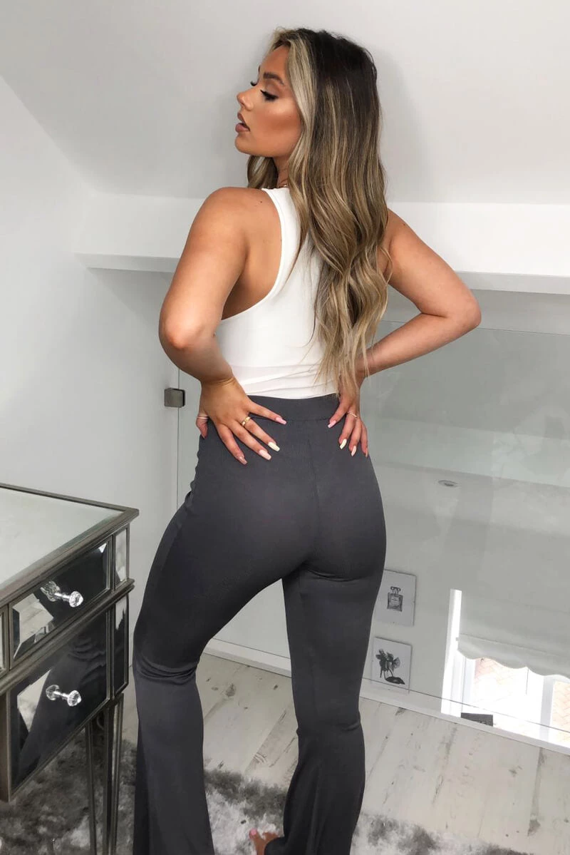 Our Grey Ribbed Flared Trousers are an essential this season. These are perfect for any occasion. We are loving them styled with a our plain bodysuits, paid with some statement heels to finish the look!