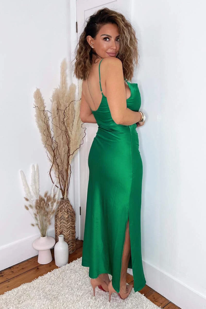 This Jade Green Satin Cowl Neck Midi Dress is the perfect satin dress