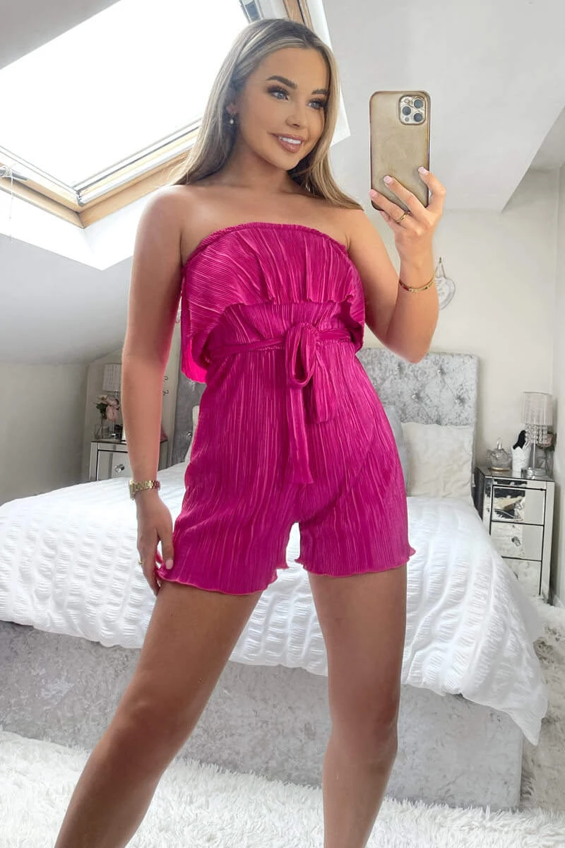 Our Cerise Plisse Bardot Playsuit is perfect for BBQ and drinks!