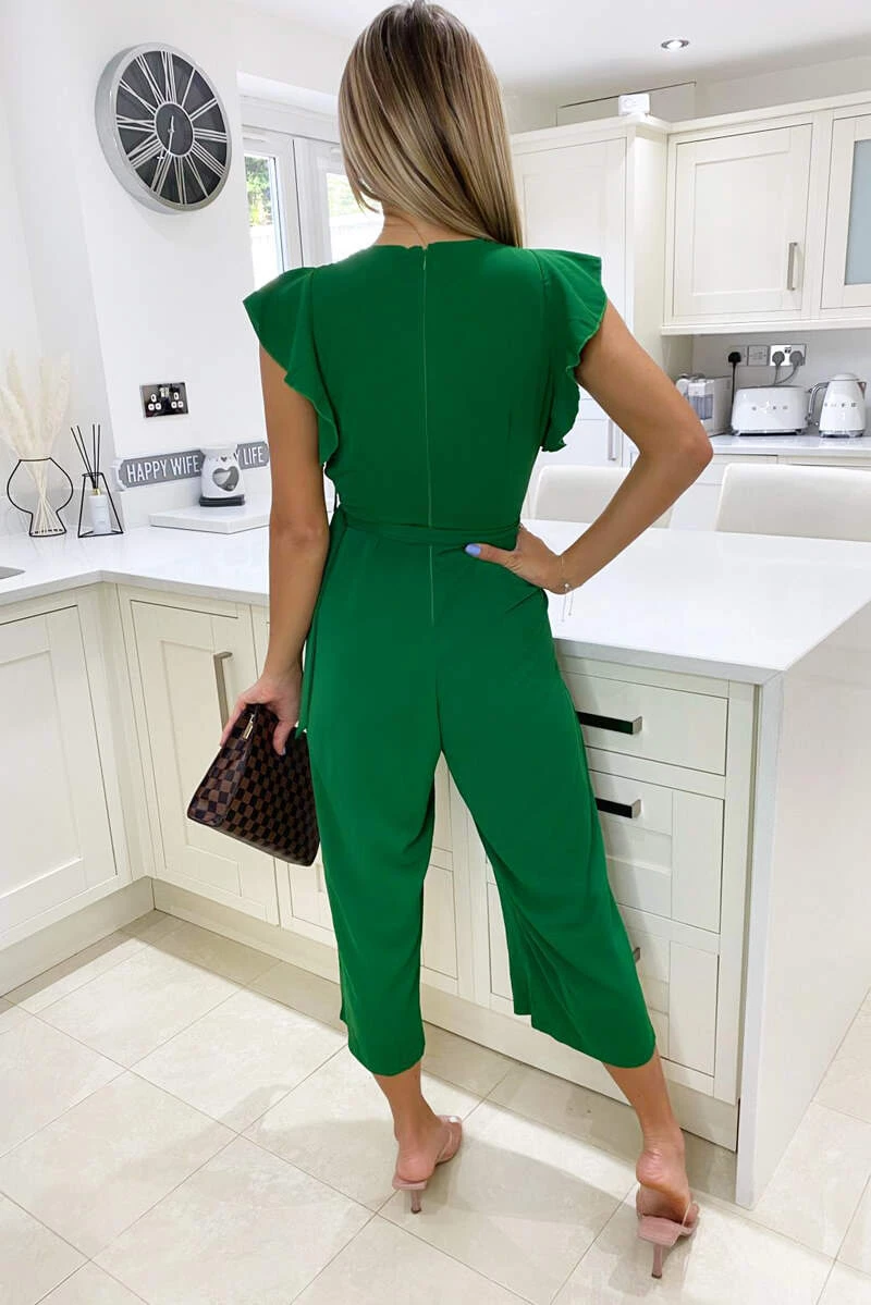 Look chic in our Green Wrap Front Belted Jumpsuit. Featuring a wide