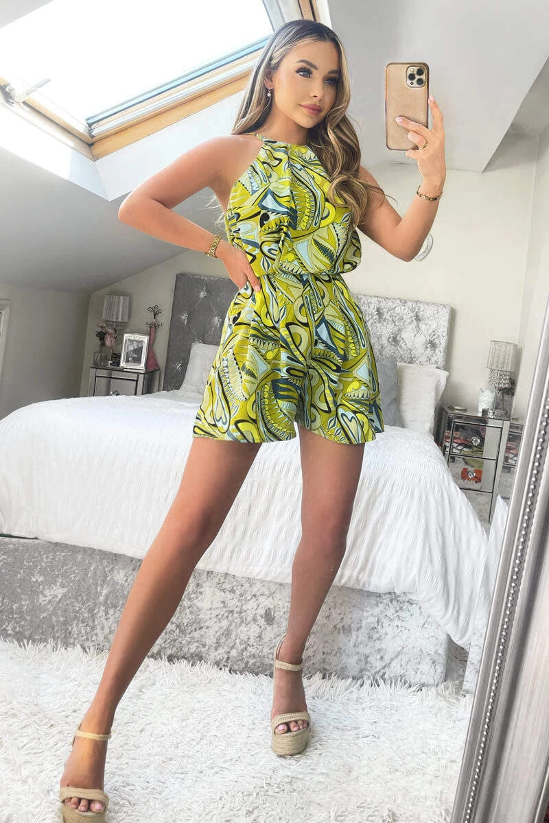 This Lime Printed High Neck Playsuit is an essential wardrobe staple