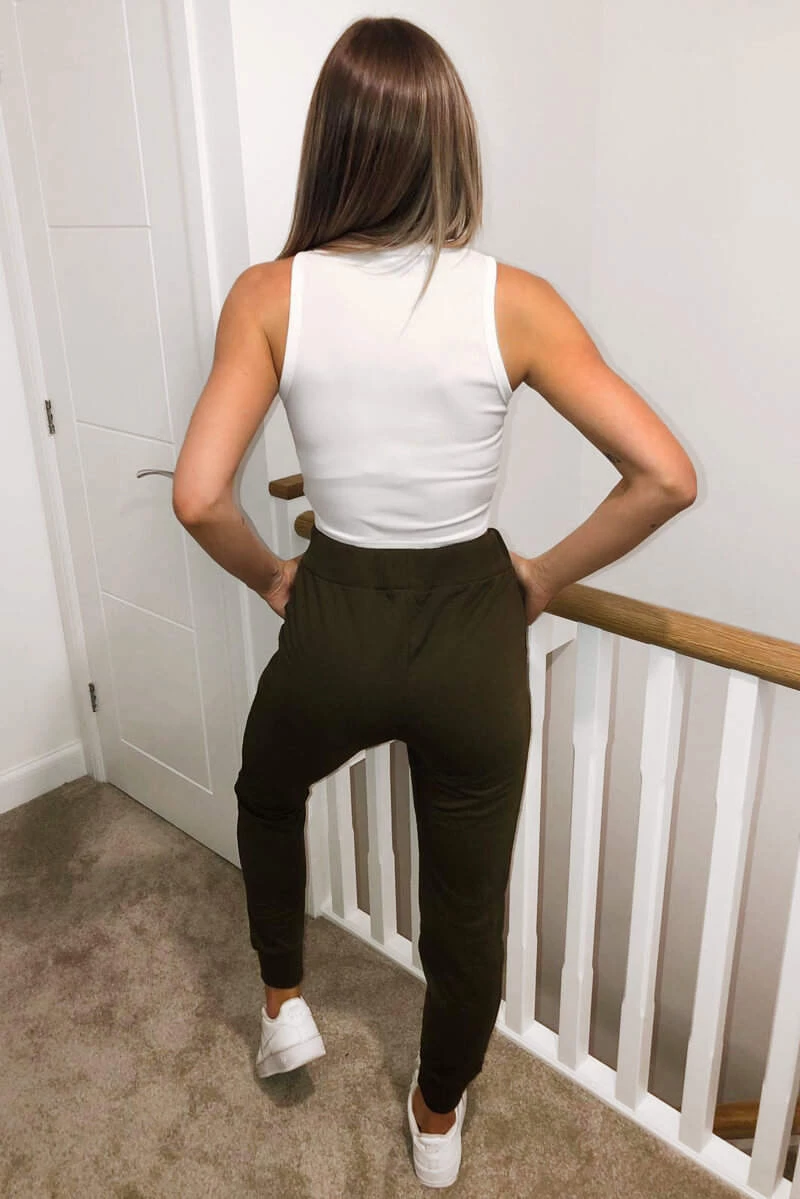 Stay comfy in these Khaki Basic Drawstring Joggers! Perfect to lounge around at home. Mix and match with your basic tops, sweatshirts or hoodies!
