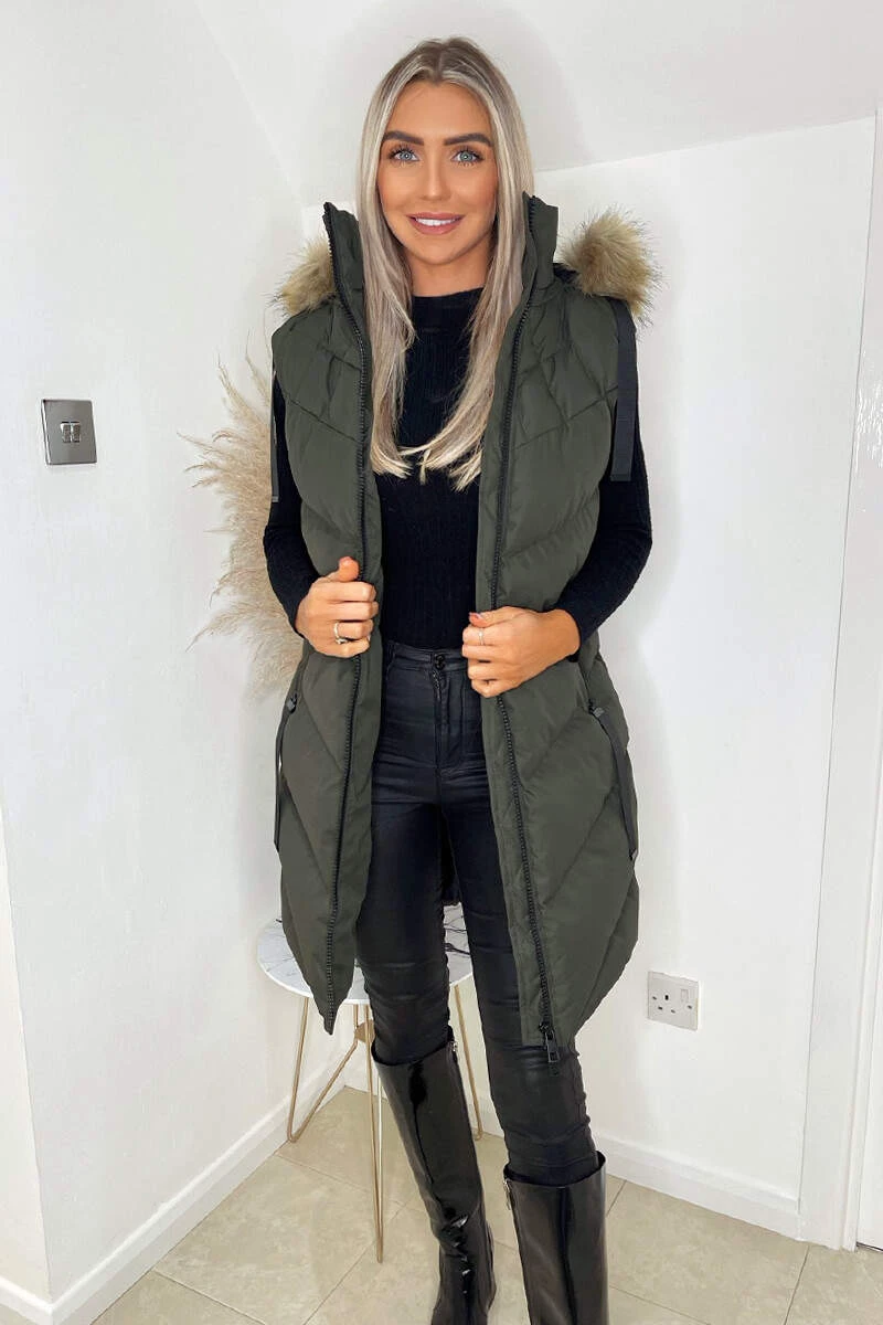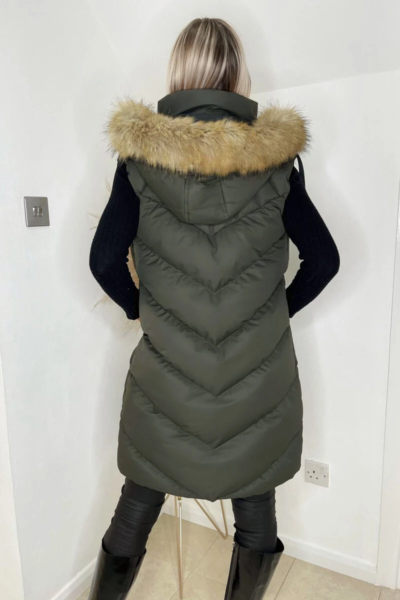 Our Khaki Faux Fur Hooded Gilet is a wardrobe staple! This design