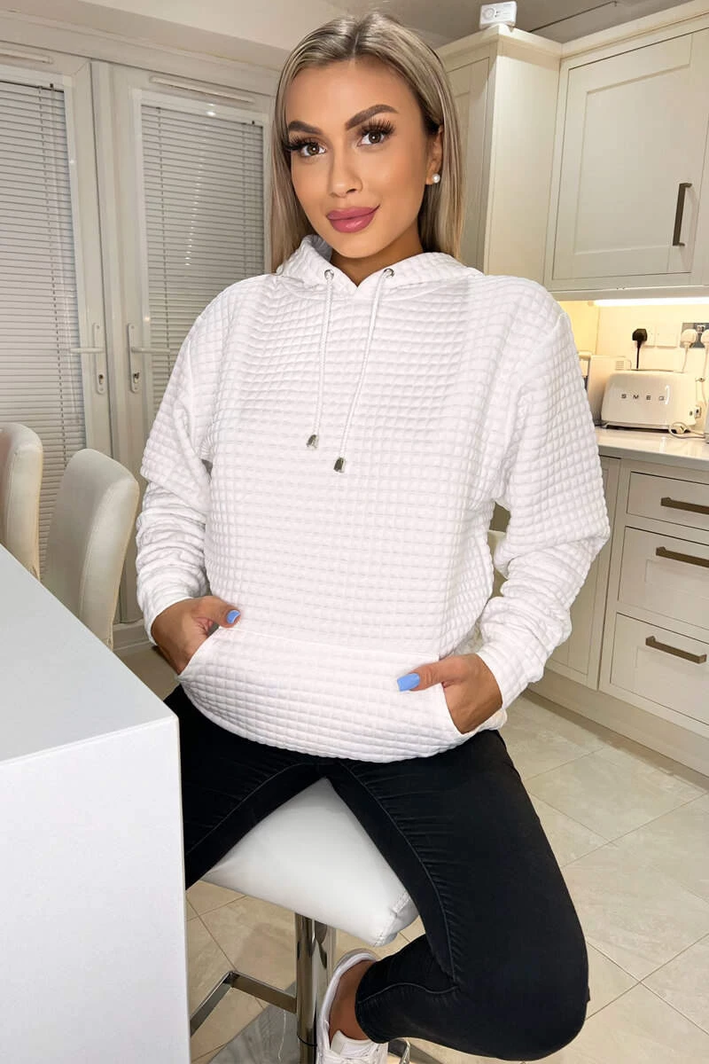 Freshen up your loungewear collection with our cream quilted hoodie.