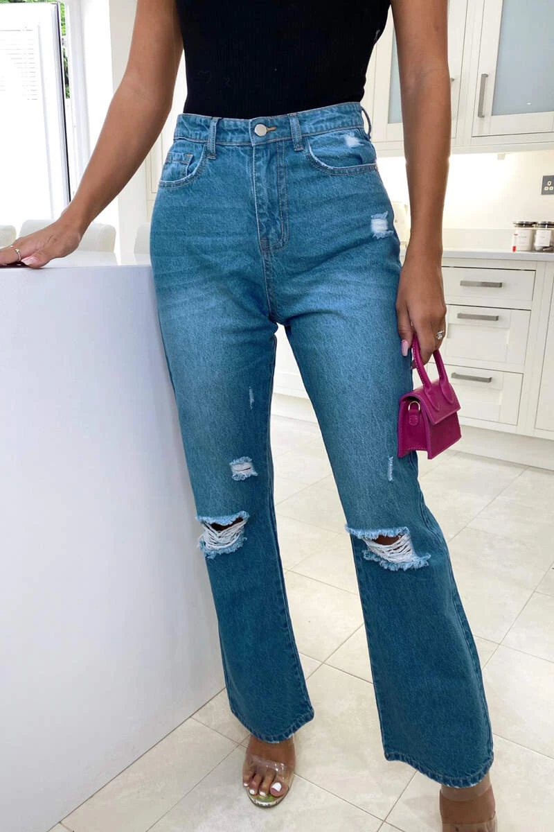 Our Mid Wash Ripped Flared Jeans are an essential this season. These