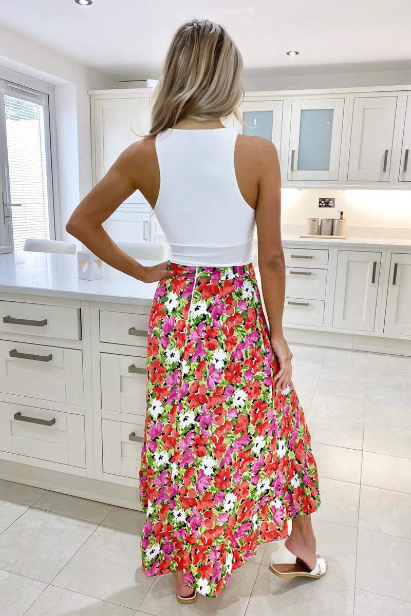 This Multi Floral Frill Wrap Midi Skirt is a perfect new addition