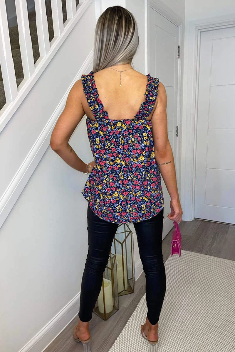 This Navy Floral Printed Elasticated Strap Top is PERFECT for summer!