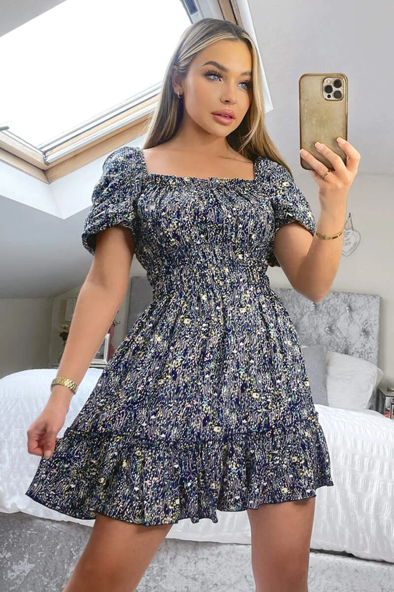 Add some print to your summer wardrobe with our Navy Printed Puff