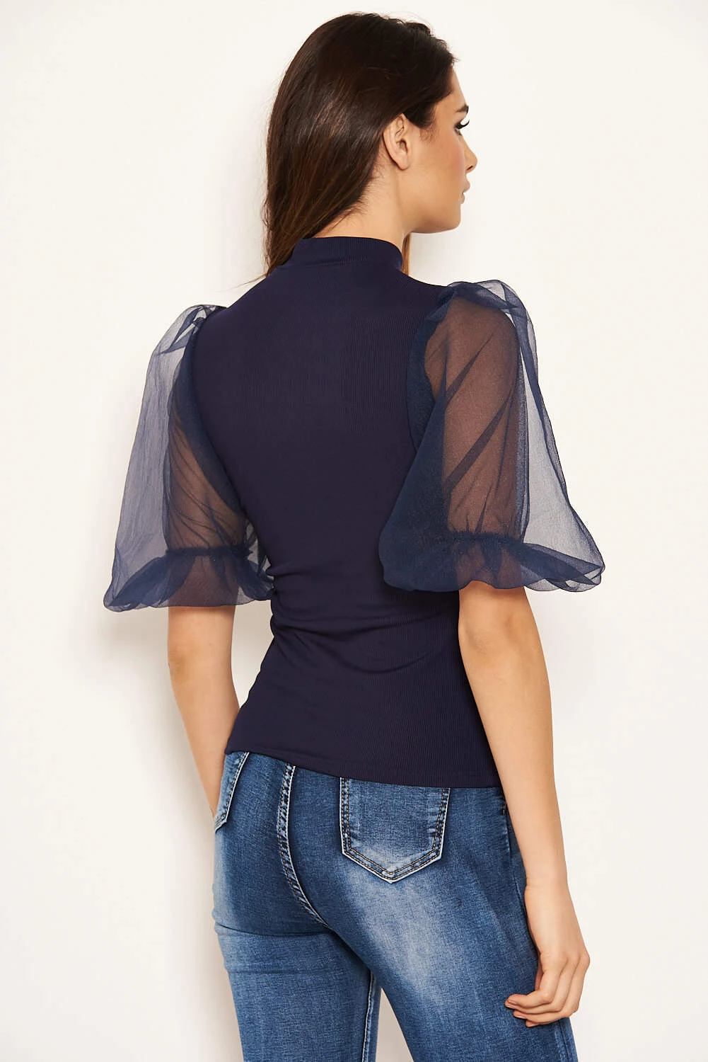Stand out in our Navy Puff Sleeve Knitted Top. Featuring a puff sleeve detail, which is so on trend right now, team it with a pair of leather pants for the perfect look!