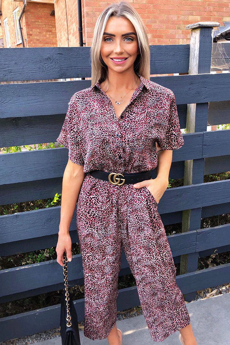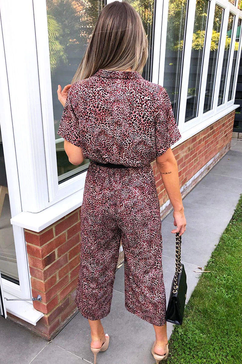 Make a statement this season in this Red Printed Button up Jumpsuit .