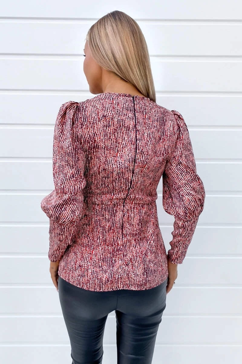 Brighten up your wardrobe with this Red Printed V-neck Top , it’s a