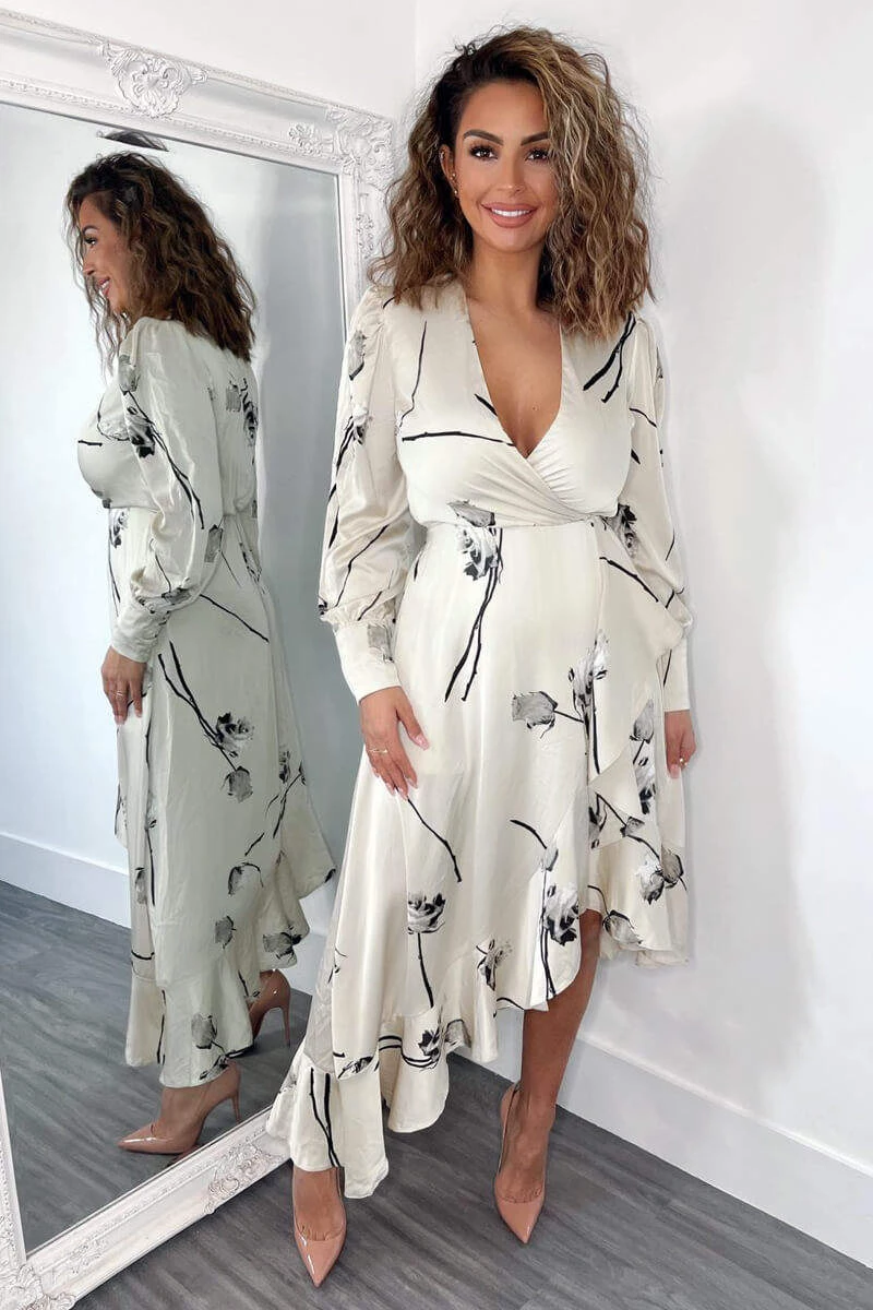 Look sophisticated in this Stone Floral Printed Wrap Over Long Sleeve