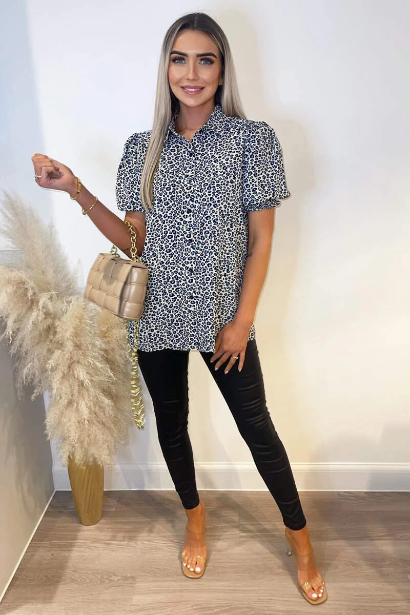 Our Blue Animal Printed Elasticated Sleeve Shirt is perfect to take