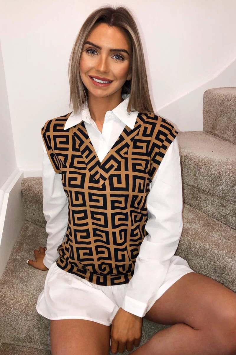 Our Geo Printed Tank Shirt is so versatile! Featuring a classic shirt
