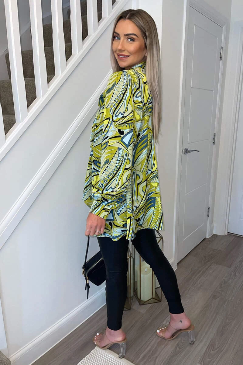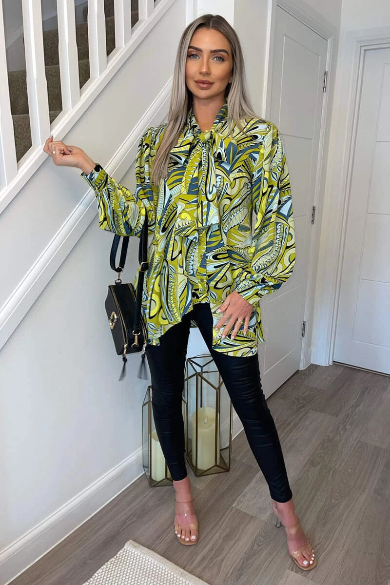 Our Lime Printed Tie Neck Shirt is so versatile and go with you
