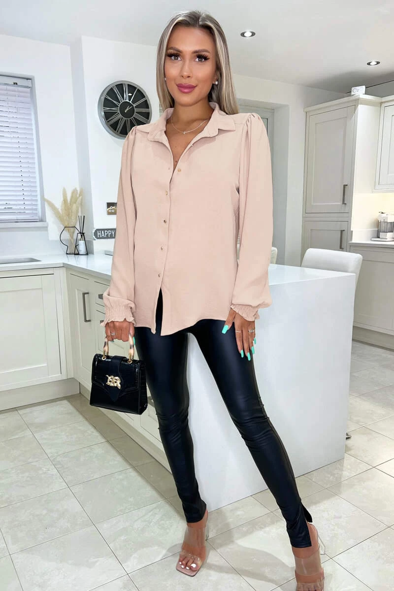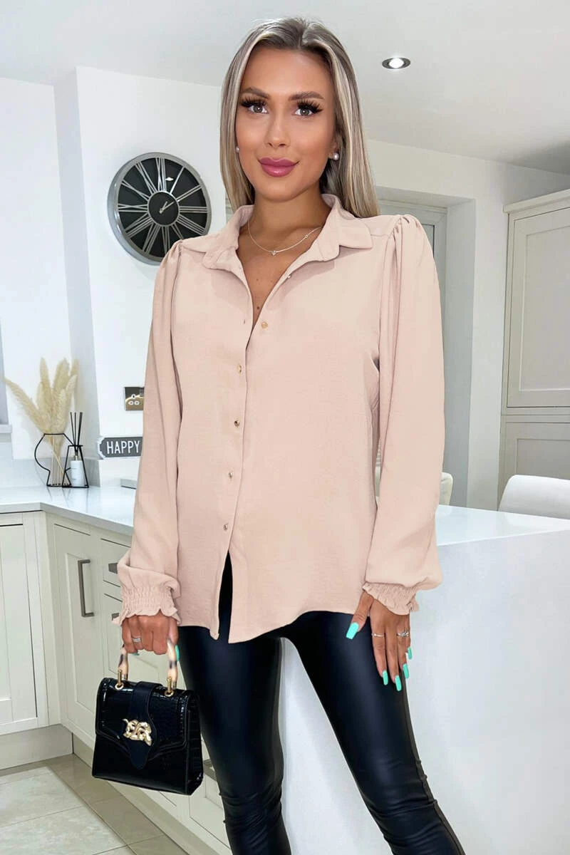 This Nude Gold Button Up Elasticated Cuff Shirt is so versatile!