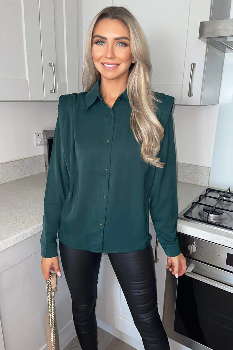 This Teal Padded Pleated Shoulder Button Up Shirt is the perfect