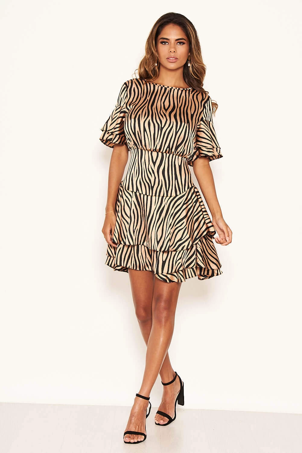 Our Zebra Print Frill Dress is super sassy. Featuring frill sleeves